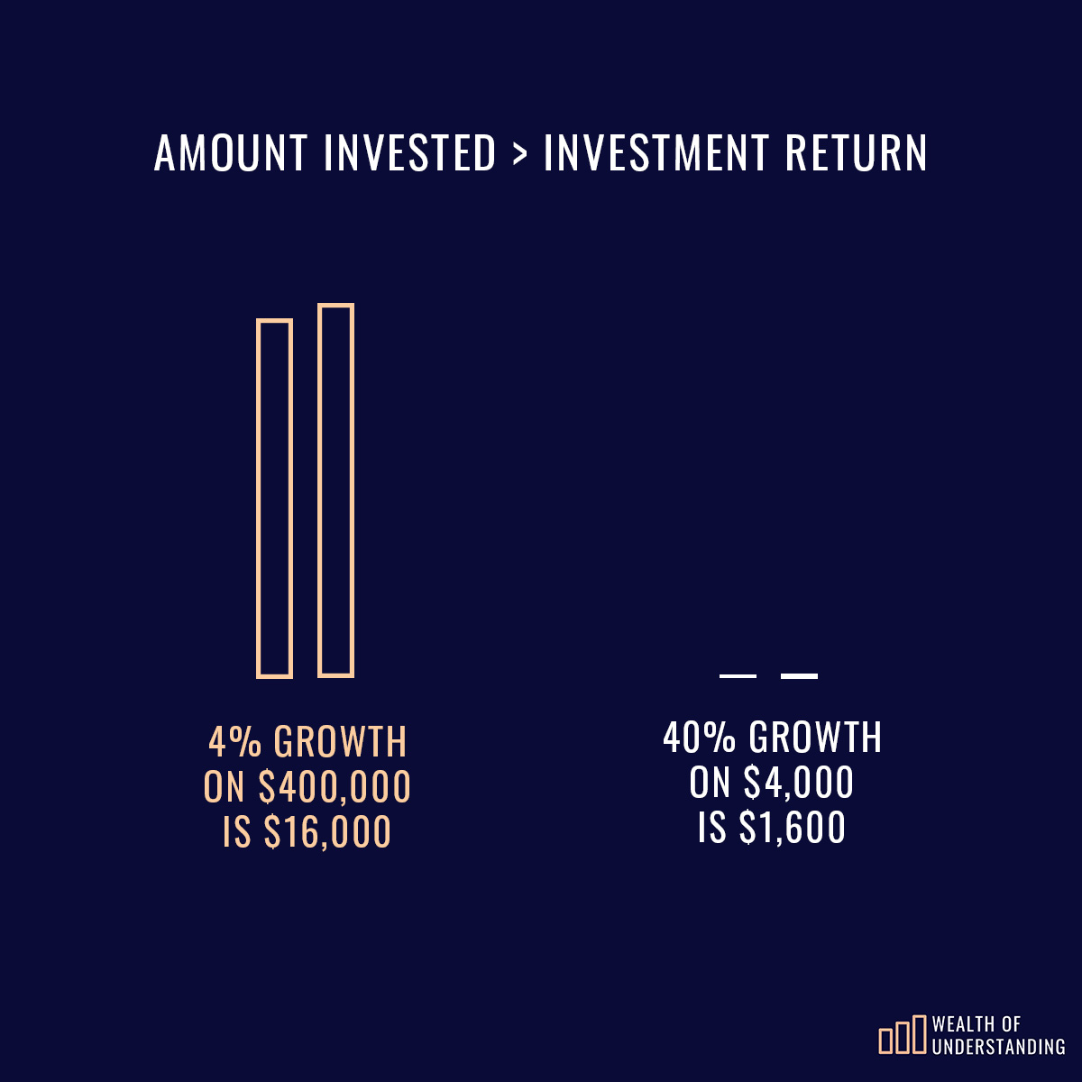Getting a really high rate-of-return (how much your investment grows in value) is awesome. But if you invest small ($) but see big returns (%), you still sort of have a small amount ($).