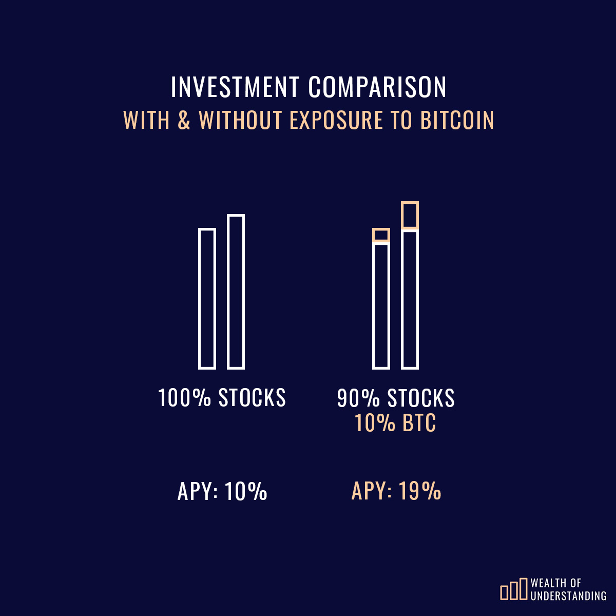 $9,000 invested in stocks with $1,000 invested in Bitcoin (at its average return of 200%) would yield: $11,900 in 12mo.
